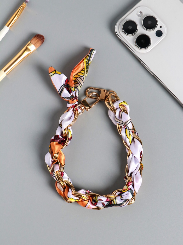 Брелок для ключей на 2 карабинах «Платок и цепочка», оранж, на сумку, рюкзак, 20×10×1.7 см — Характеристики