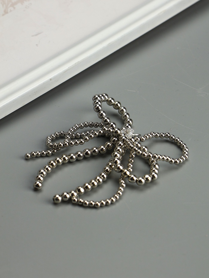 - Двойной бант под серебро: Главный элемент брелока — изящный двойной бант с благородным серебристым покрытием. Он добавляет образу лёгкости и шика, не перегружая его. Такой акцент уместно смотрится и на классической сумке, и на молодёжном рюкзаке.