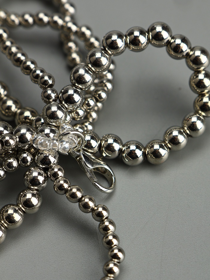 Брелок для ключей на карабине «Двойной бант», под серебро, на сумку, рюкзак, бусины d=0.4 и 0.5 см, 11.5×9.5×1 см — Характеристики