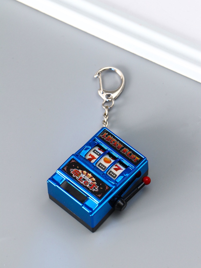 Брелок для ключей на карабине «Игровой автомат - казино», синий, крутится барабан, 2.7×3.4×5 см — Характеристики
