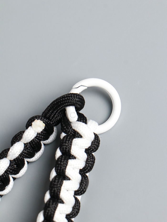 Этот чёрно-белый карабин с паракордом — больше, чем просто брелок. Он сочетает в себе практичность и стиль, становясь надёжным спутником для ваших ключей и не только. Прочный текстильный шнур выдерживает серьёзные нагрузки, а компактный размер делает аксессуар удобным для ежедневного ношения.