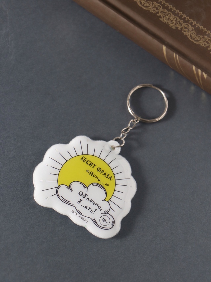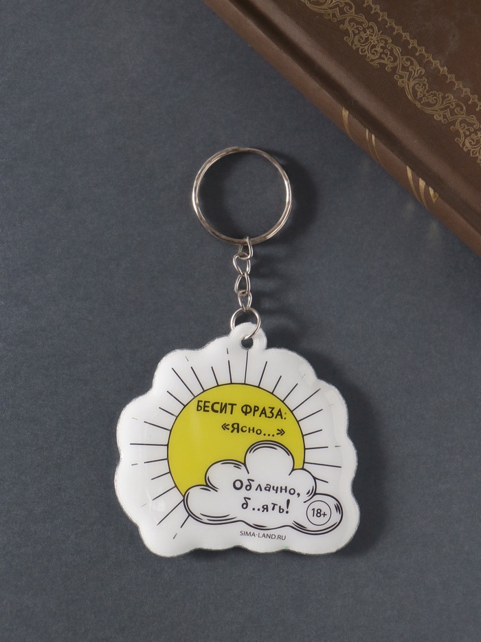 Особенность этого изделия заключается в его уникальном дизайне. Ироничная фраза «Ясно… Облачно, б..ять!!!» резонирует с теми, кто ценит остроумие и готов улыбаться даже в самые серые дни. Будь то подарок другу или личное приобретение, этот брелок станет ярким акцентом в вашей коллекции аксессуаров.