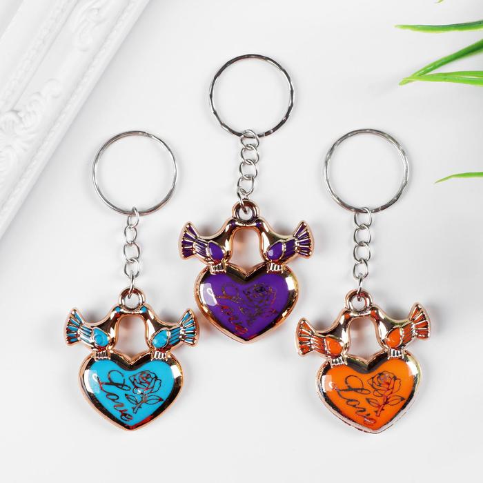 Брелок для ключей на кольце «Голубки на сердце», пластик под металл, 3×3.7 см, МИКС — Характеристики