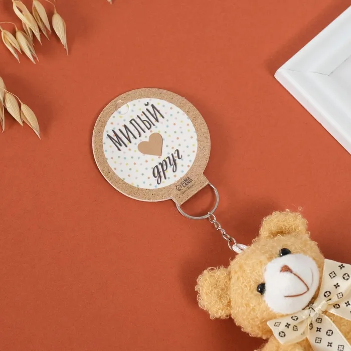 Брелок для ключей на кольце «Игрушка. Мишка с бежевым бантиком», на сумку, рюкзак, 9×6×9.5 см — Характеристики