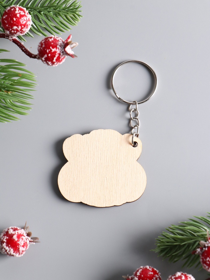 Брелок выполнен из дерева, что подчеркивает его экологичность и придает изделию особую теплоту. Размеры 4.5×4 см позволяют легко носить его с собой, а надежное металлическое кольцо гарантирует удобство использования. Лаконичный дизайн и внимание к деталям делают этот брелок универсальным подарком для близких или самого себя.