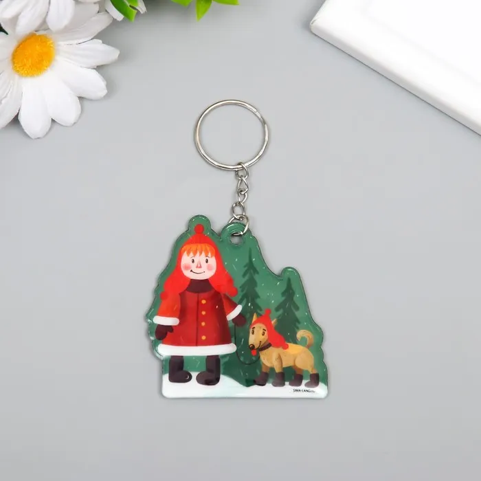 Брелок для ключей на кольце «Малышка выгуливает пёсика: зима», ПВХ, мягкий, 6×5.9 см — Характеристики