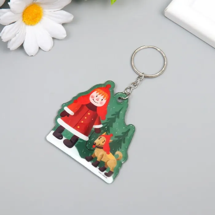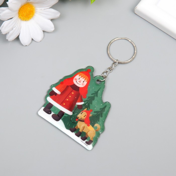 Брелок для ключей на кольце «Малышка выгуливает пёсика: зима», ПВХ, мягкий, 6×5.9 см
