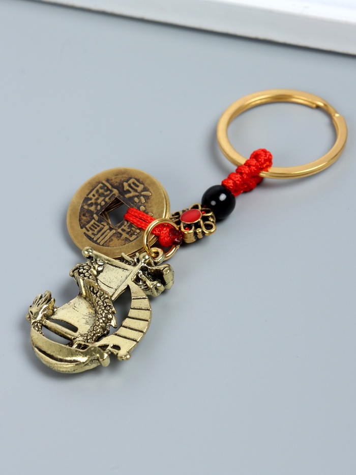 Брелок для ключей на кольце «Нэцкэ. Дракон на корабле», металл, 5 монет, набор 2 шт., h=8 см — Характеристики