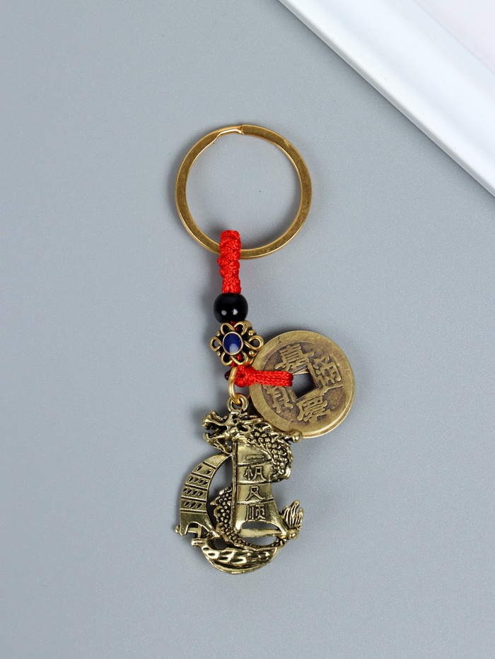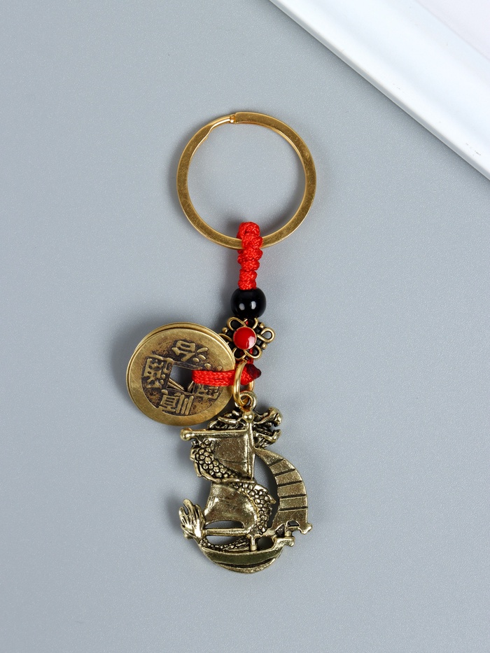 Брелок для ключей на кольце «Нэцкэ. Дракон на корабле», металл, 5 монет, набор 2 шт., h=8 см
