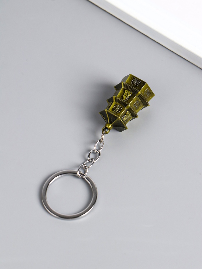 - Трехъярусная пагода: Конструкция из трех уровней символизирует баланс и духовное восхождение. Миниатюрная копия пагоды выглядит изящно и притягивает взгляд. Это украшение для ключей с глубоким смыслом.