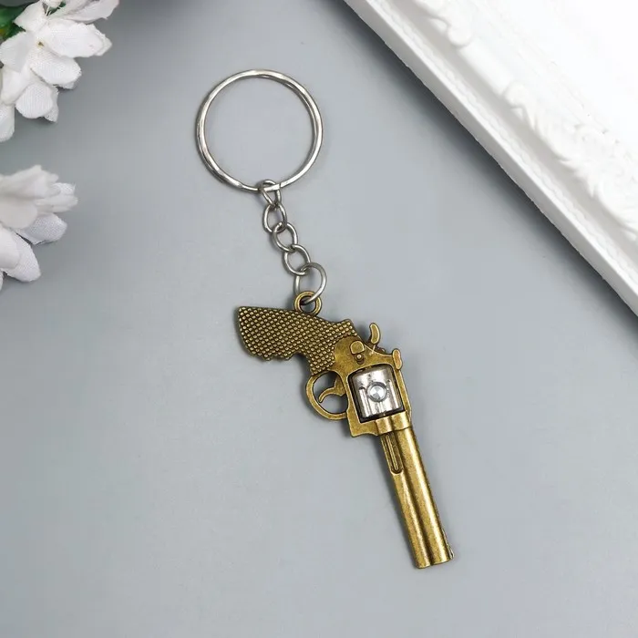 Этот металлический аксессуар для ключей сочетает в себе брутальную эстетику и практичность, становясь не просто функциональной вещью, но и стильным выражением характера. Точеная форма револьвера на прочном металлическом кольце придает обычному набору ключей индивидуальность и харизму.
