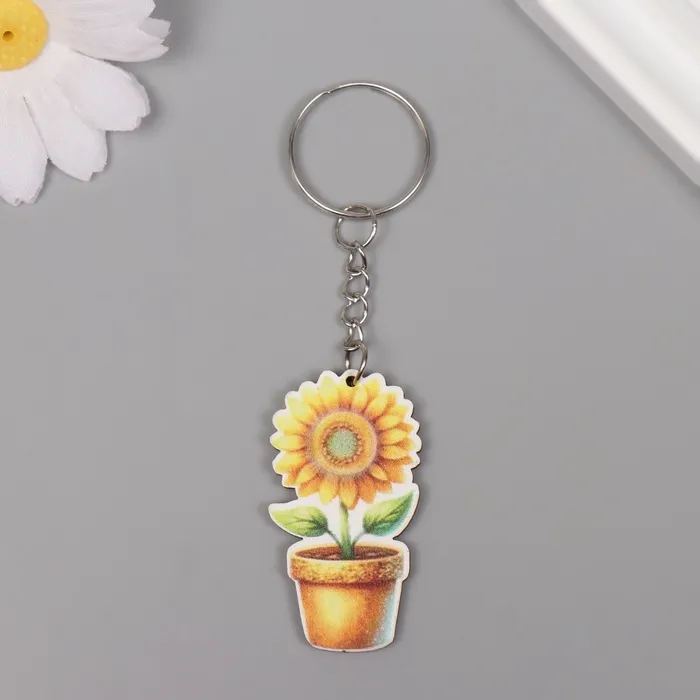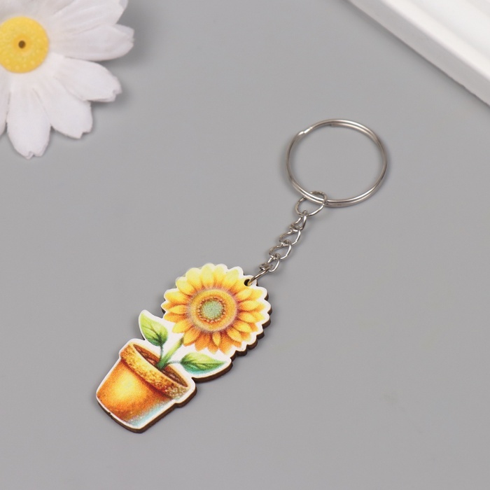 Брелок для ключей на кольце «Подсолнух в горшке», дерево, 4.6×2.5×0.3 см — Характеристики