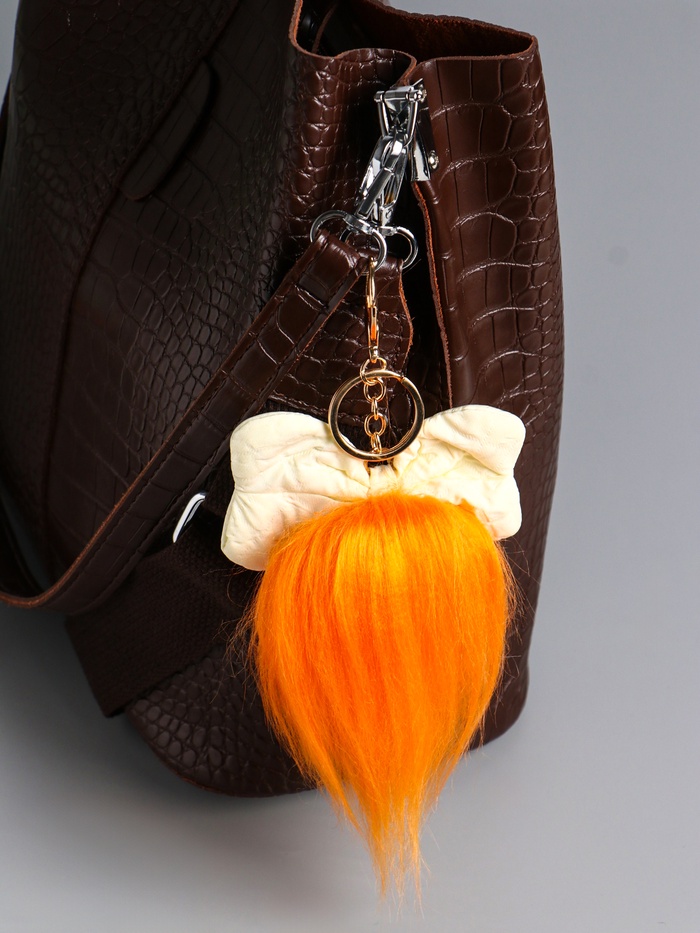 - Яркий оранжевый цвет и бантик: Насыщенный оранжевый цвет делает аксессуар заметным в сумке или на ключах. Изящный бантик добавляет образу мамонтенка очарования и индивидуальности.