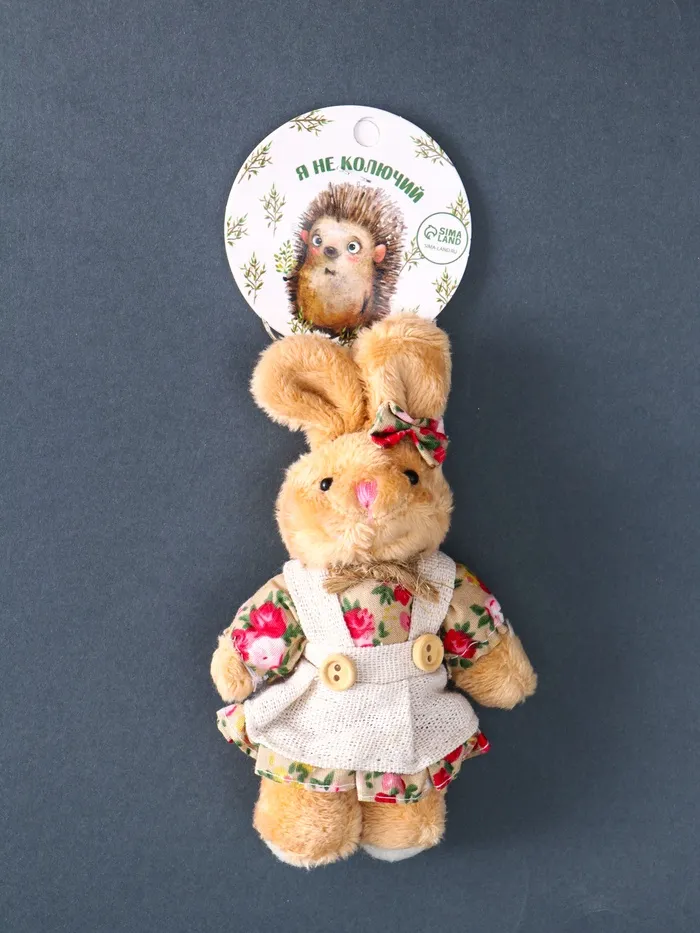 Брелок для ключей на кольце «Пушистик. Зайка в цветочном сарафане», на сумку, рюкзак, 8.5×4×14 см — Характеристики