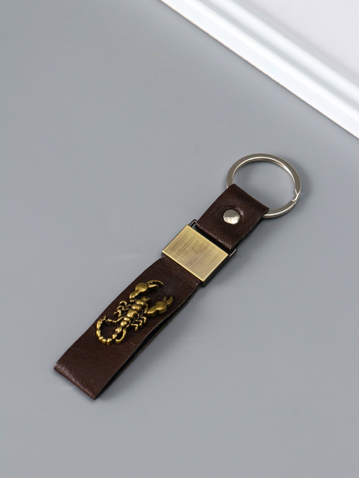 Этот кожаный брелок со скорпионом станет стильным и практичным спутником для ваших ключей. Он превращает обычный набор ключей в законченный аксессуар, подчёркивающий индивидуальность владельца.