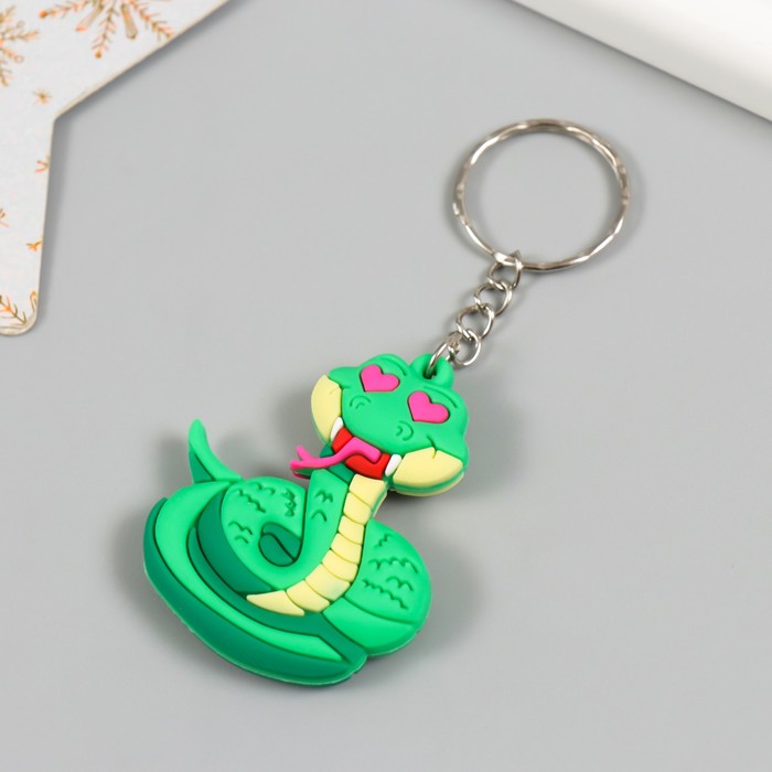 Брелок для ключей на кольце резина «Змейка с сердечками в глазах», 5×4 см
