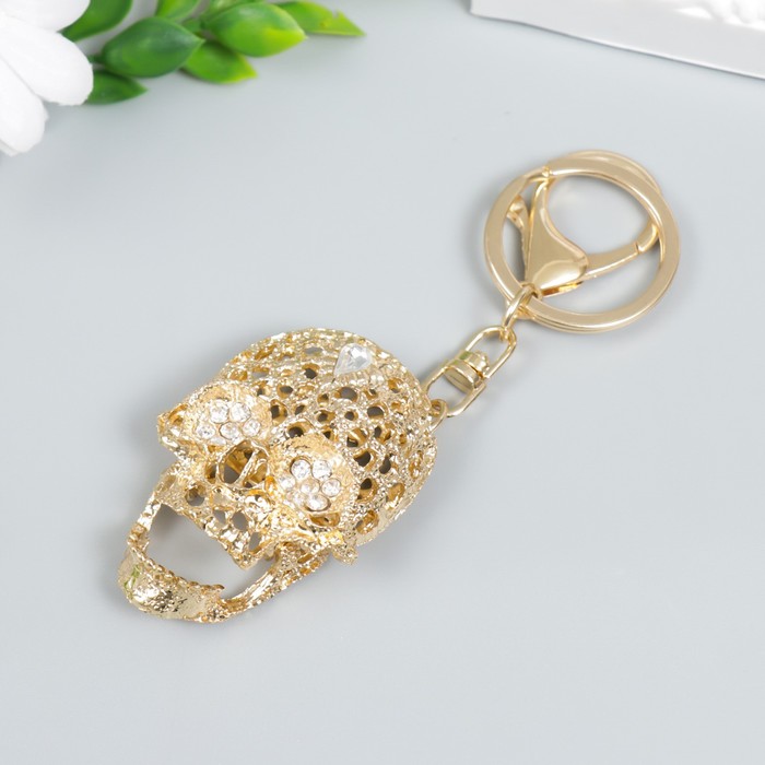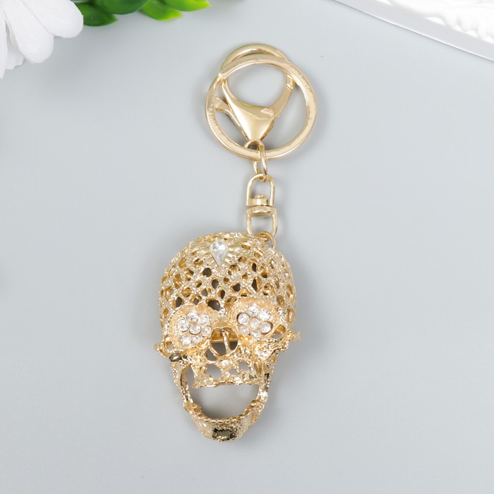 Брелок для ключей на кольце с карабином «Ажурный череп», металл, эмаль, стразы, 11.6×3.7 см