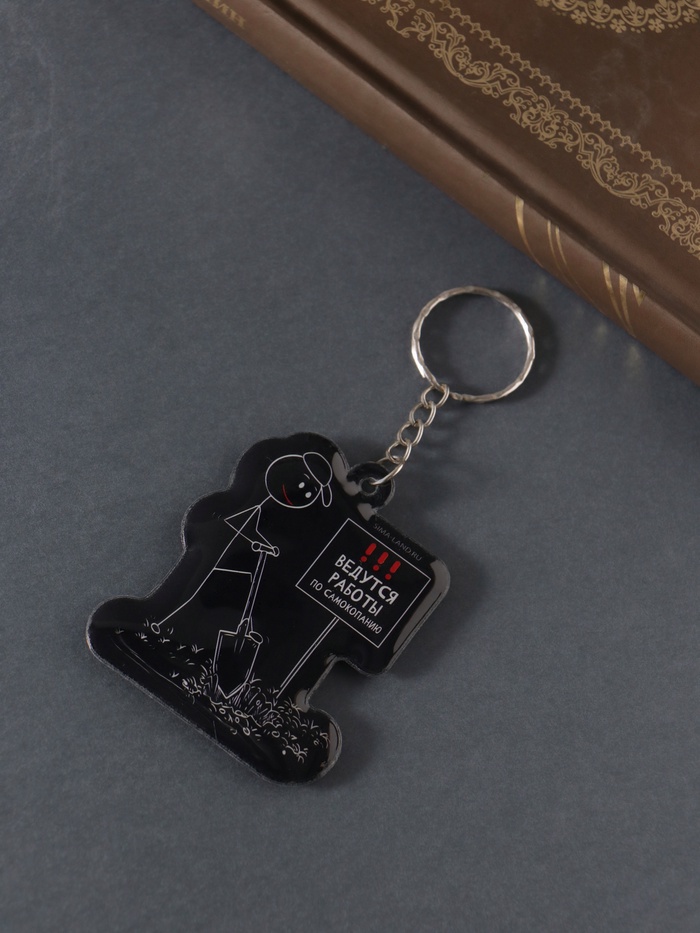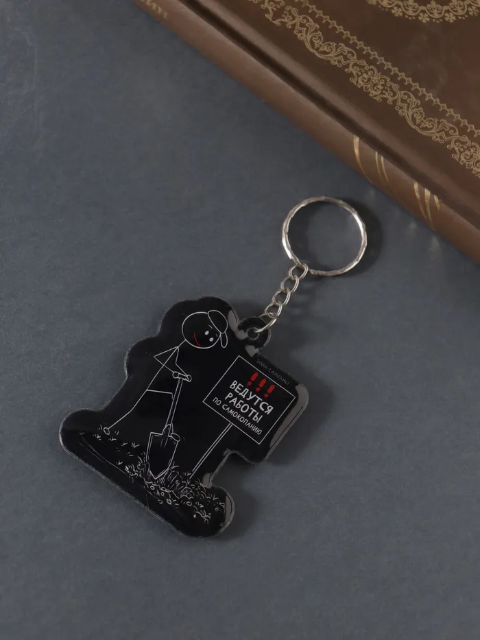 Этот брелок — способ носить с собой не только ключи, но и настроение. Чёрный цвет делает надпись контрастной, а мягкая текстура добавляет тактильного удовольствия. Для тех, кто превращает самоанализ в искусство.