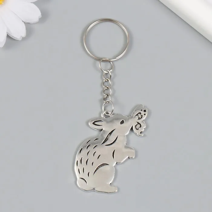 Брелок для ключей на кольце «Зайчик с бабочкой на носу», металл, 5×3.4 см — Характеристики