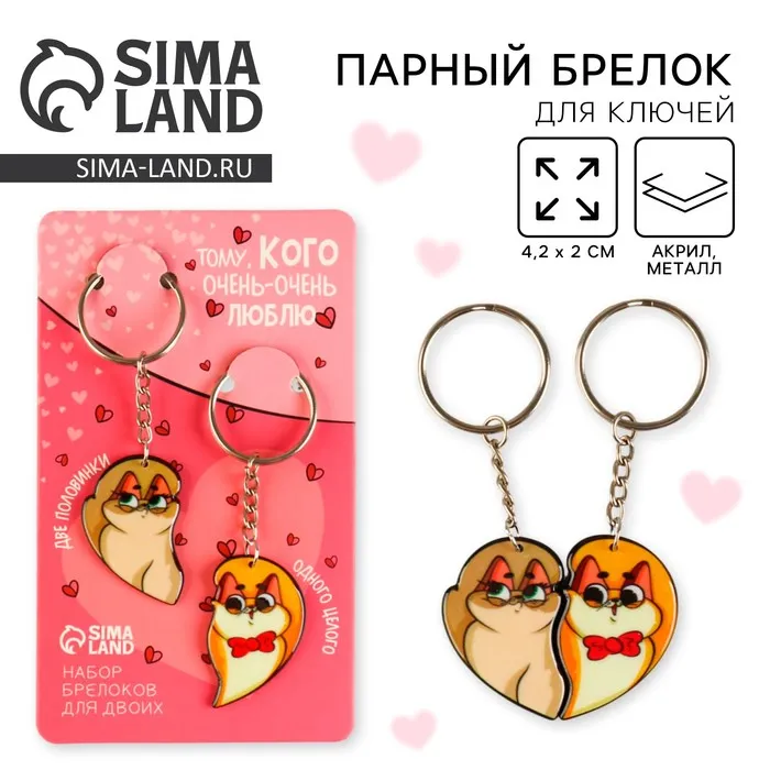 Брелок для ключей парный «Тому кого очень очень люблю», акриловый, 13,3 х 8 — Характеристики