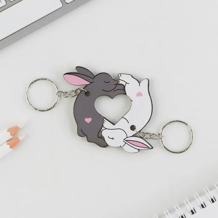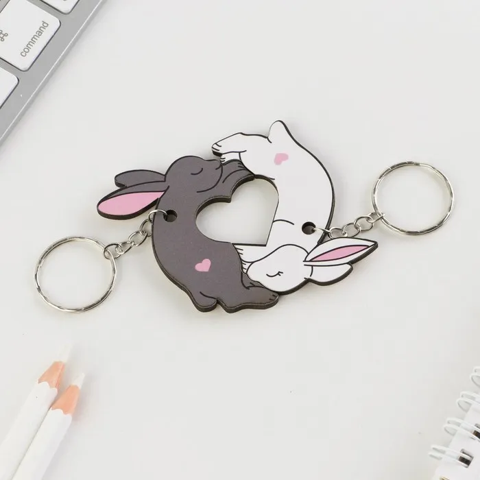 Брелок для ключей парный «Зайчики», деревянный, 9 х 15 см