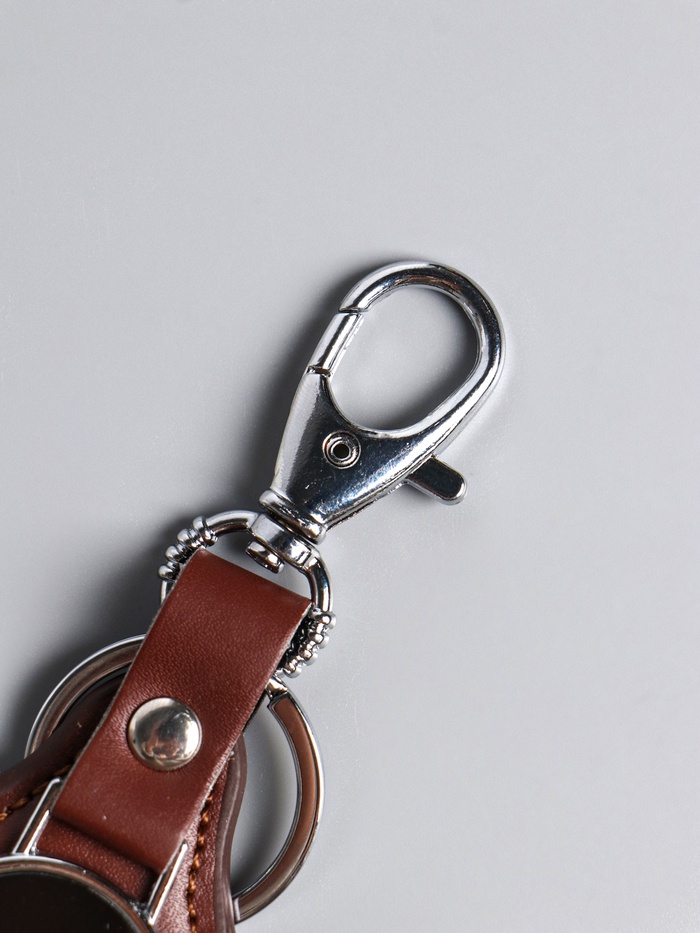 - Стильный дизайн: Коричневый цвет и фактура искусственной кожи создают солидный внешний вид. Аксессуар хорошо сочетается с ключами от дома, машины или служебного помещения.