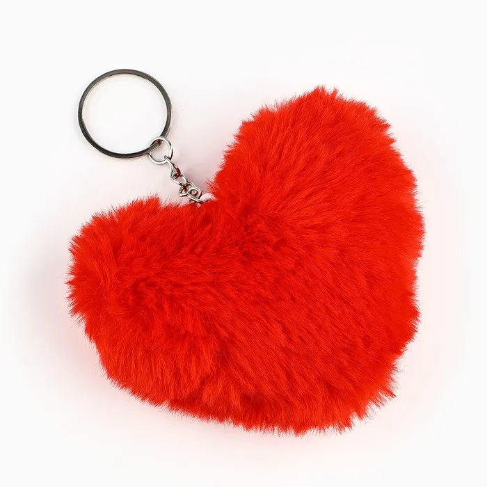 Пушистый брелок для ключей на кольце «Сердечко», на рюкзак, сумку, 11×10×4 см, МИКС