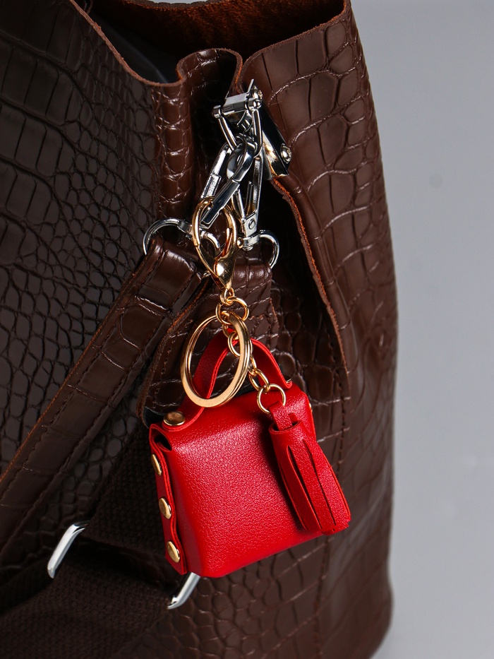 Этот брелок-сумочка — стильный и практичный спутник для ваших ключей. Бордовый оттенок добавляет образу элегантности, а универсальный дизайн делает его уместным в любой день.