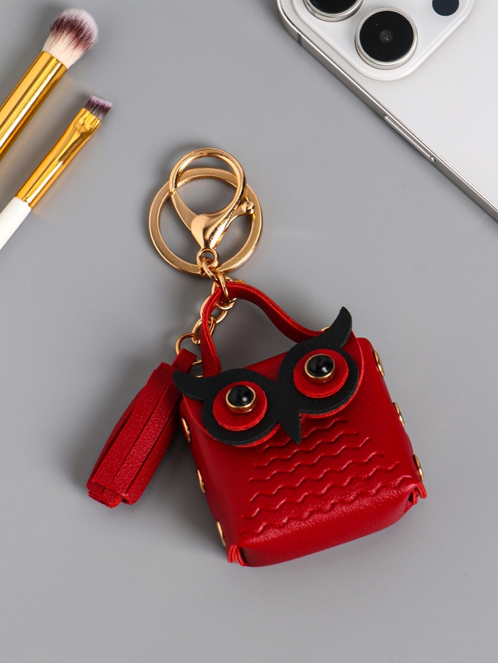 Брелок для ключей с карабином, с кистью «Сумочка. Сова», на сумку, рюкзак, бордо, 5.2×2.5×6 см — Характеристики