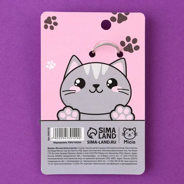 Брелок для ключей «Возьми меня на ручки», 12 х 3,5 см — Характеристики