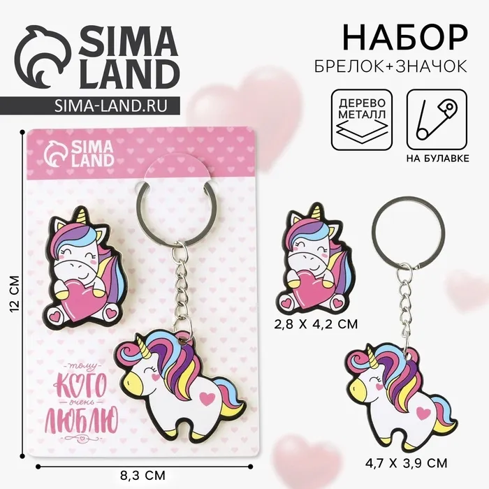 Брелок для ключей, значок, сувенир «Единорог», набор, 8,3 х 12 см — Характеристики