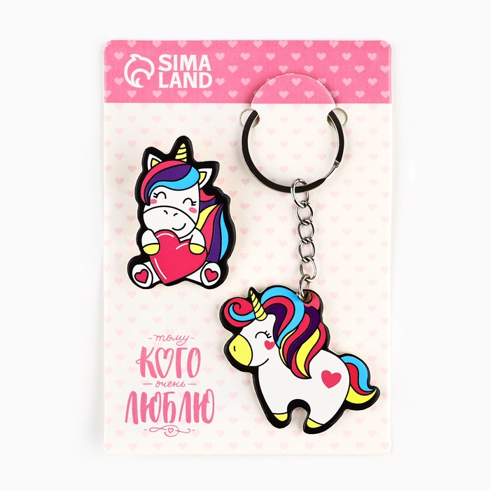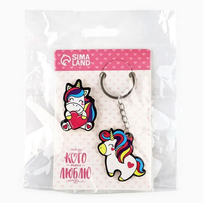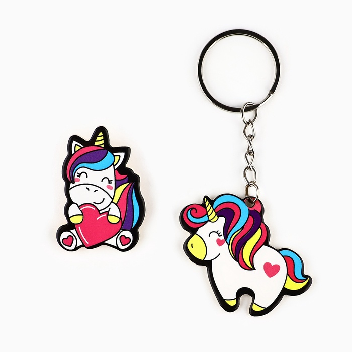 Брелок для ключей, значок, сувенир «Единорог», набор, 8,3 х 12 см