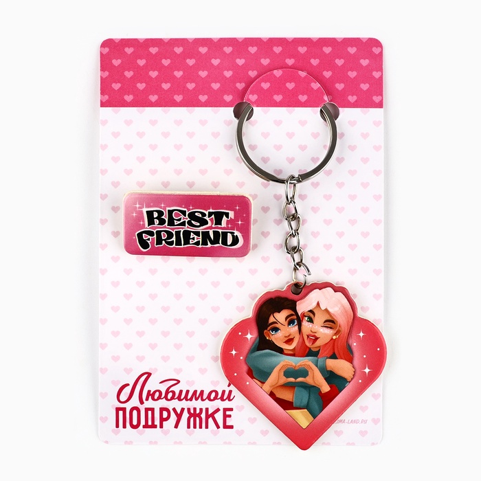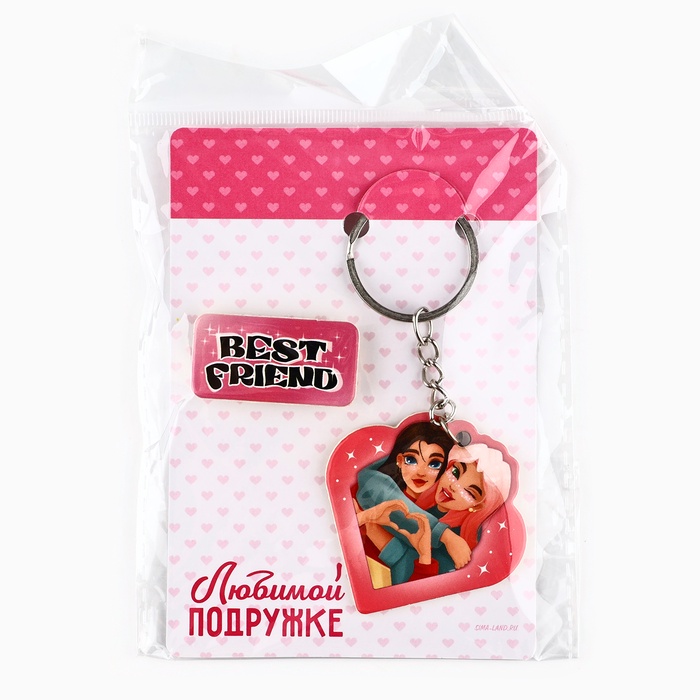 Брелок для ключей, значок, сувенир «Любимой подружке», набор, 8,3 х 12 см