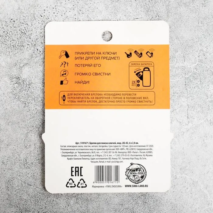 Как это работает: прикрепляете брелок к ключам, переводите переключатель на оборотной стороне в состояние «Вкл» – готово! Теперь, чтобы найти ключи с брелоком достаточно просто громко свистнуть – брелок реагирует на звук! Ваши ключи под надежной защитой!
