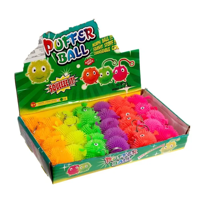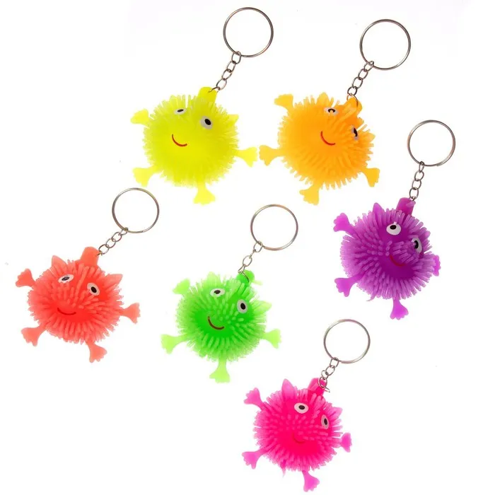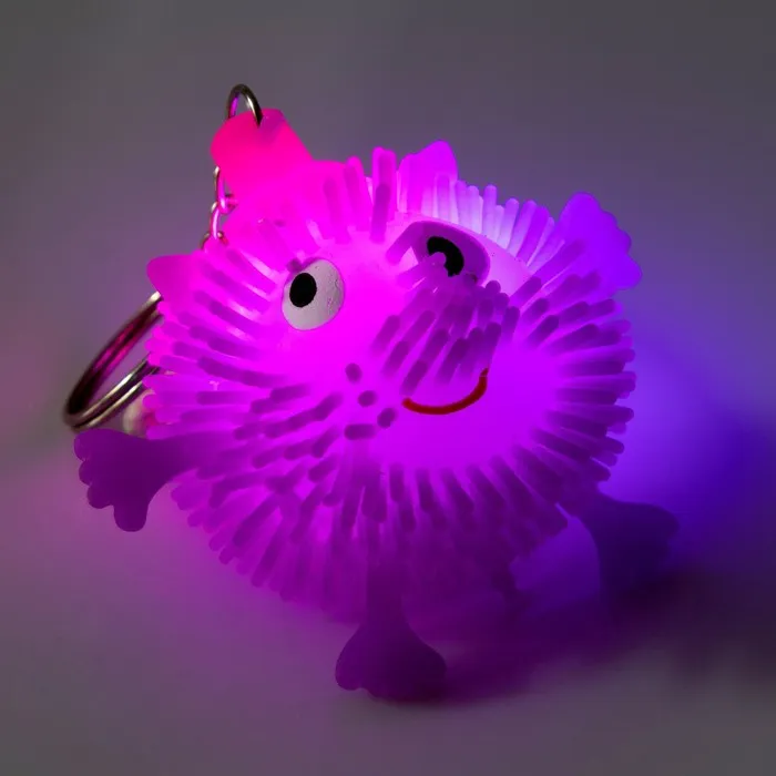 У озорного пушистика есть резиновая верёвочка, за которую удобно держать во время игры. А внутри такого ёжика находится шарик, он светится и мигает при ударе, что очень зрелищно выглядит в темноте. Эта детская игрушка завладеет вниманием малыша — в неё невозможно не влюбиться!