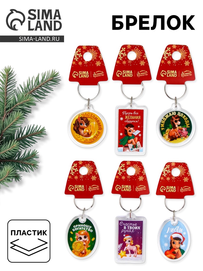 Брелок из пластика «Новогодний», 6 шт., 5×4 см, МИКС — Характеристики