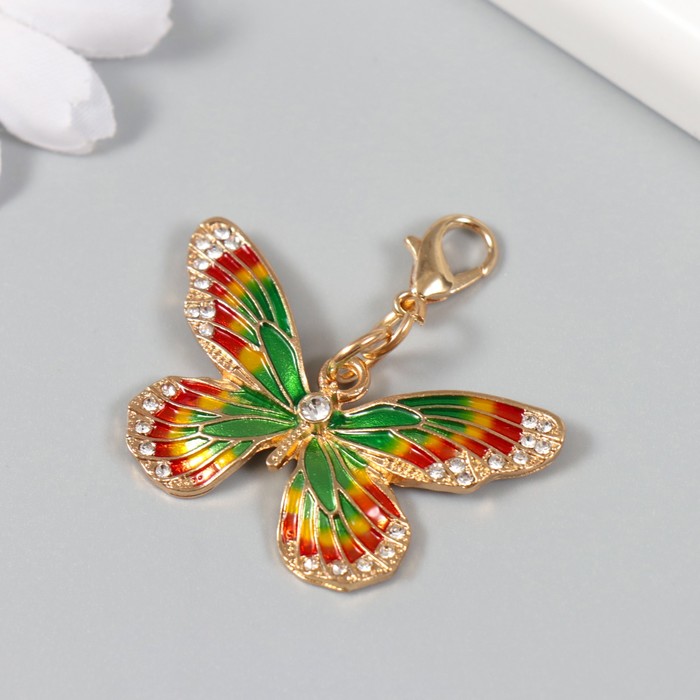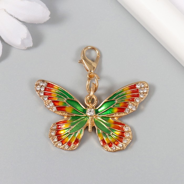 Брелок карабин металл, эмаль, стразы "Бабочка Махаон" 9х4,3 см — Характеристики