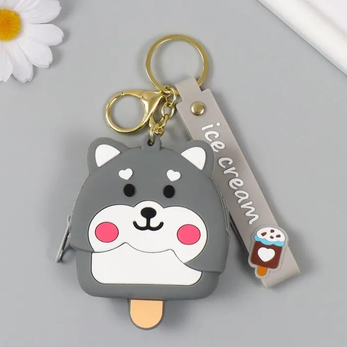 Брелок кошелёк с карабином, ремешком силикон "Хаски-эскимо" 2,5х7,2х9 см — Характеристики