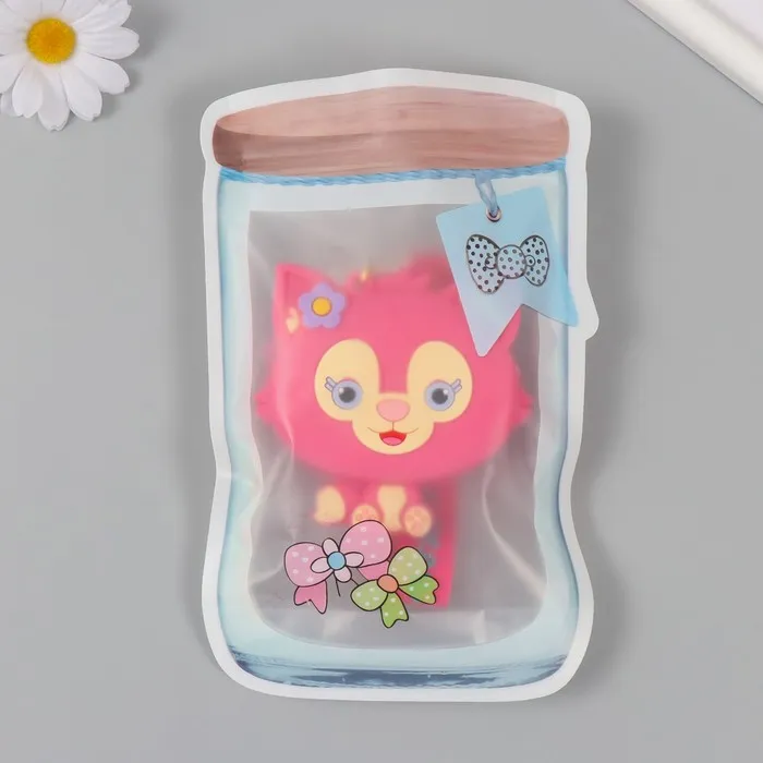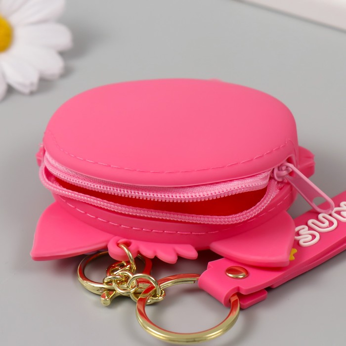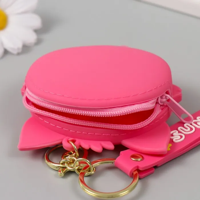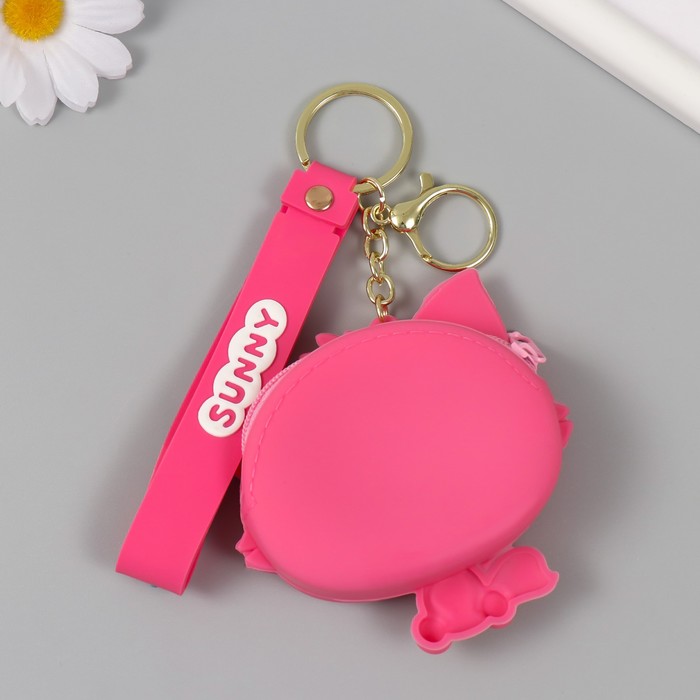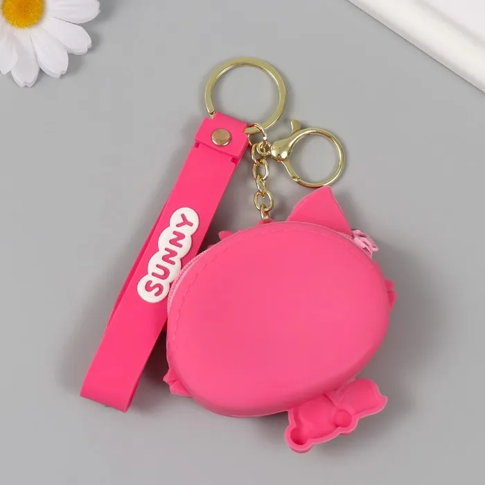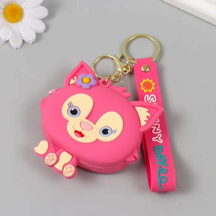 Брелок кошелёк с карабином, ремешком силикон "Котёнок с цветочком" 3х8,5х8,3 см — Характеристики