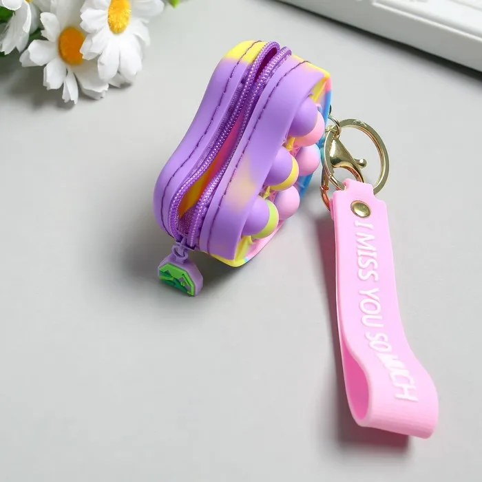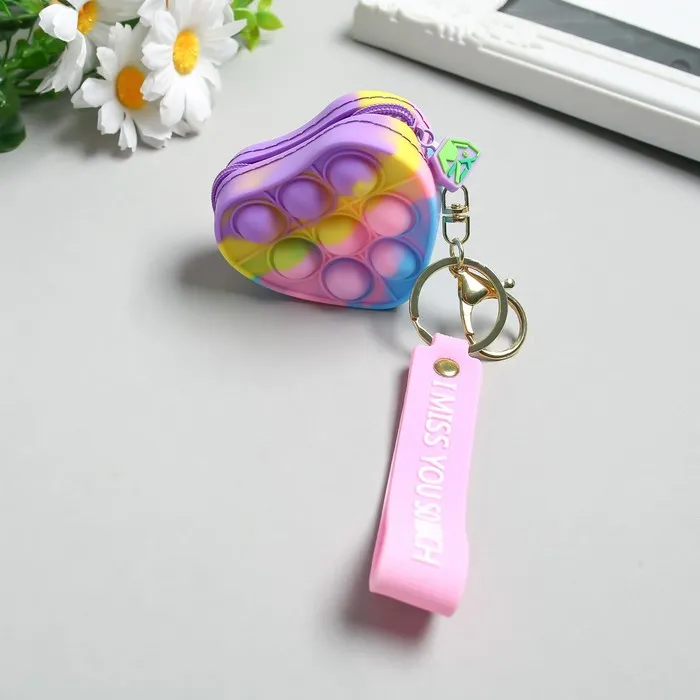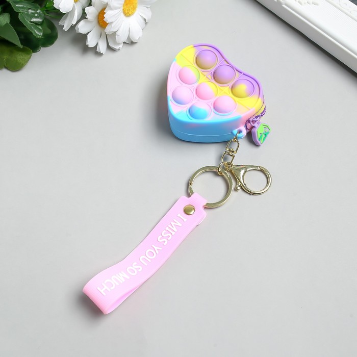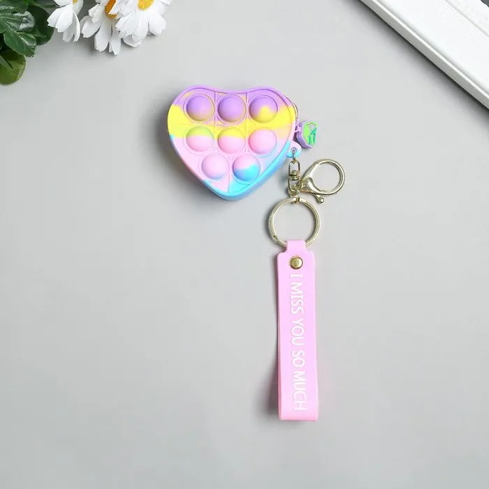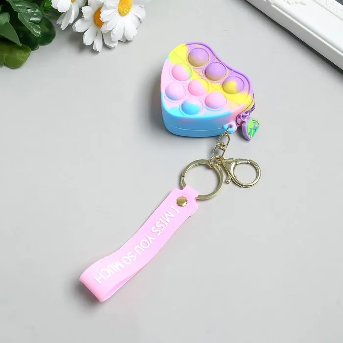 Брелок кошелёк с карабином силикон "Пузырьки антистресс" сердечко МИКС 7,3х3х6,5 см