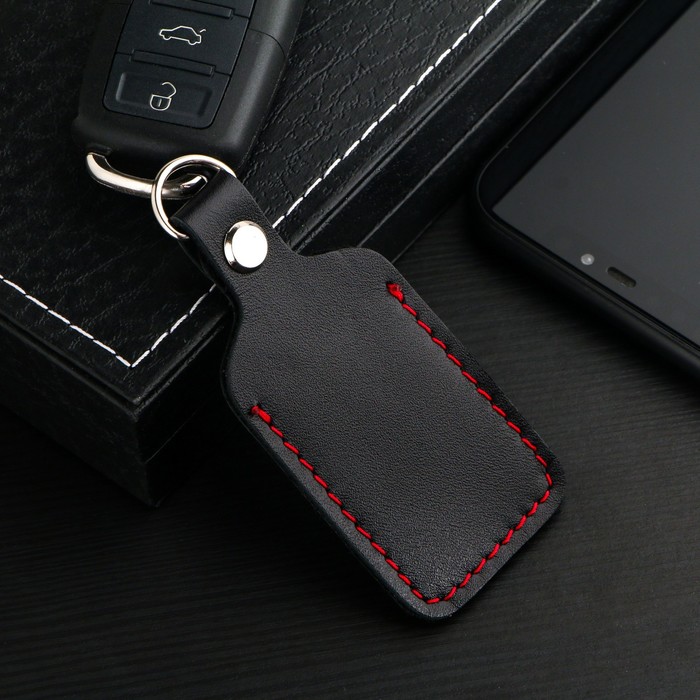 Брелок кожаный для автомобильного ключа, метка, прямоугольный, натуральная кожа, черный