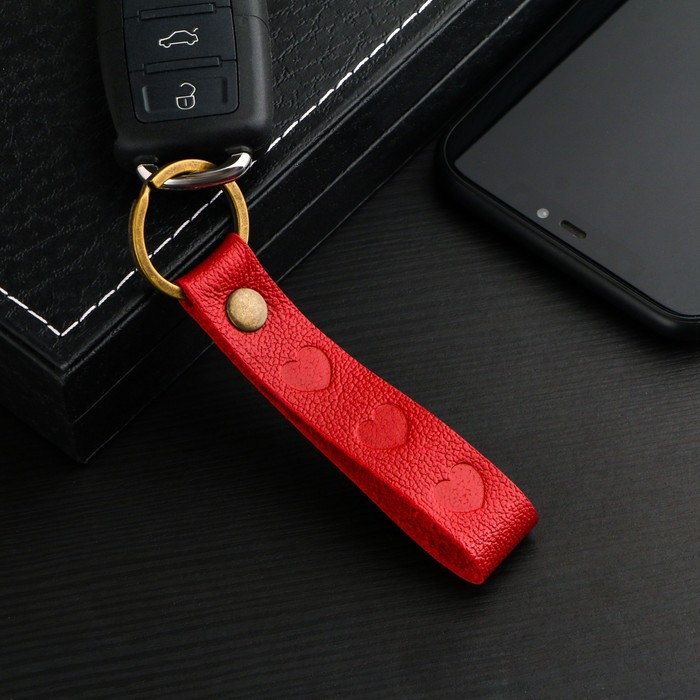 Брелок кожаный для автомобильного ключа, ремешок, натуральная кожа, красный, сердце