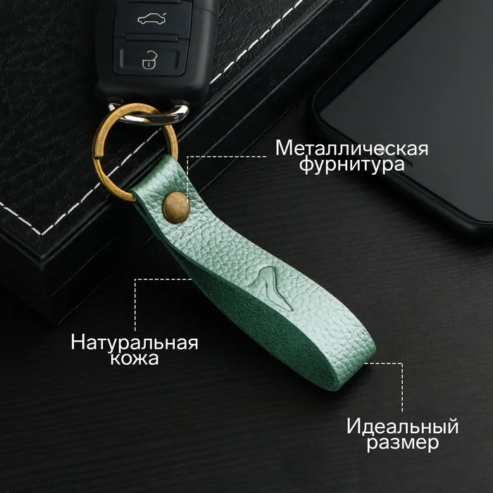 Брелок кожаный для автомобильного ключа, ремешок, натуральная кожа, светло-зеленый, каблук — Характеристики