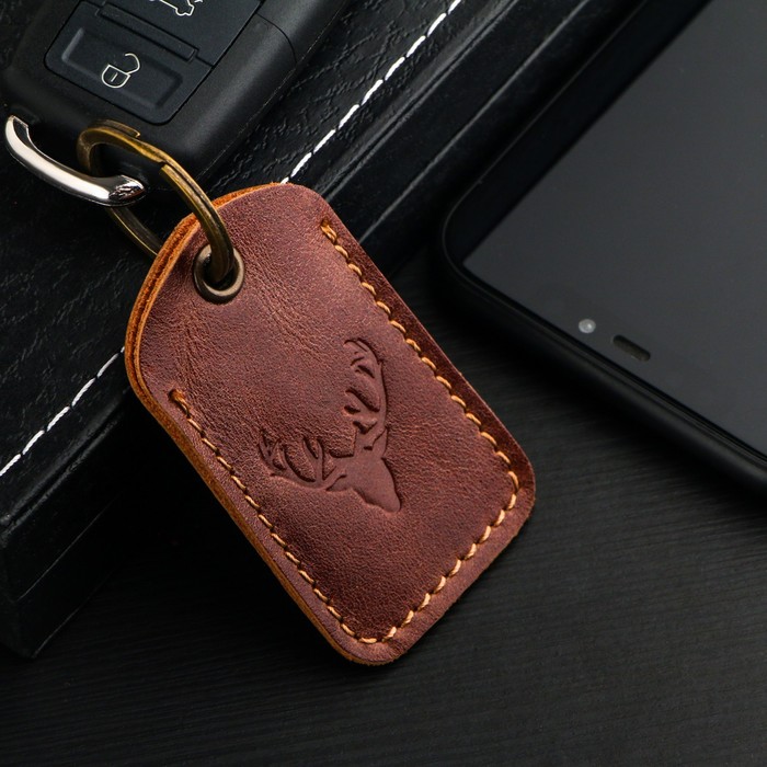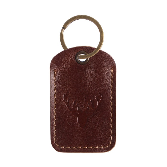 Брелок кожаный для ключа, метка, прямоугольный, натуральная кожа, коричневый, олень — Характеристики