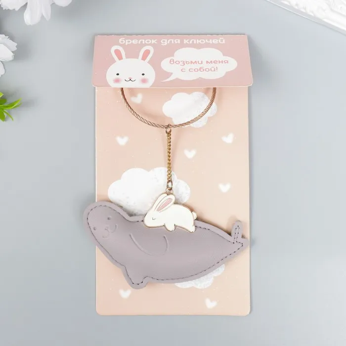 Брелок кожзам "Тюлень со спящим зайчиком" эмаль 6,3х9 см — Характеристики