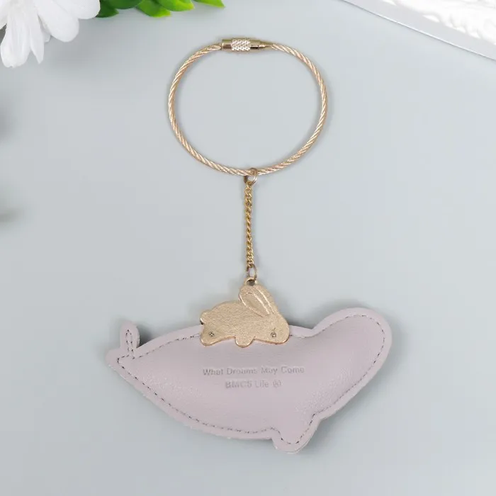 Брелок кожзам "Тюлень со спящим зайчиком" эмаль 6,3х9 см
