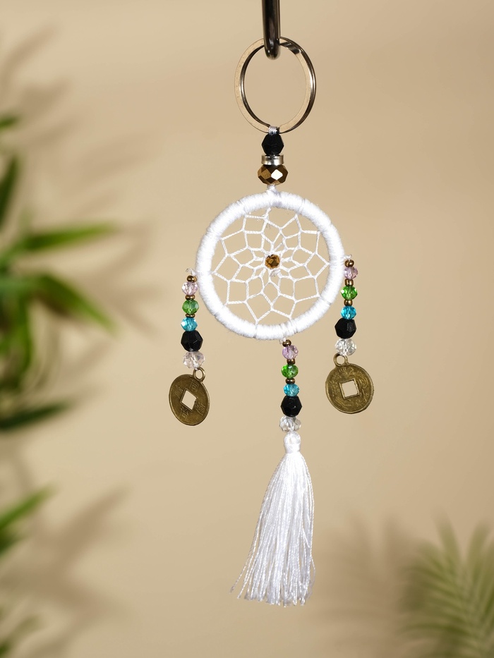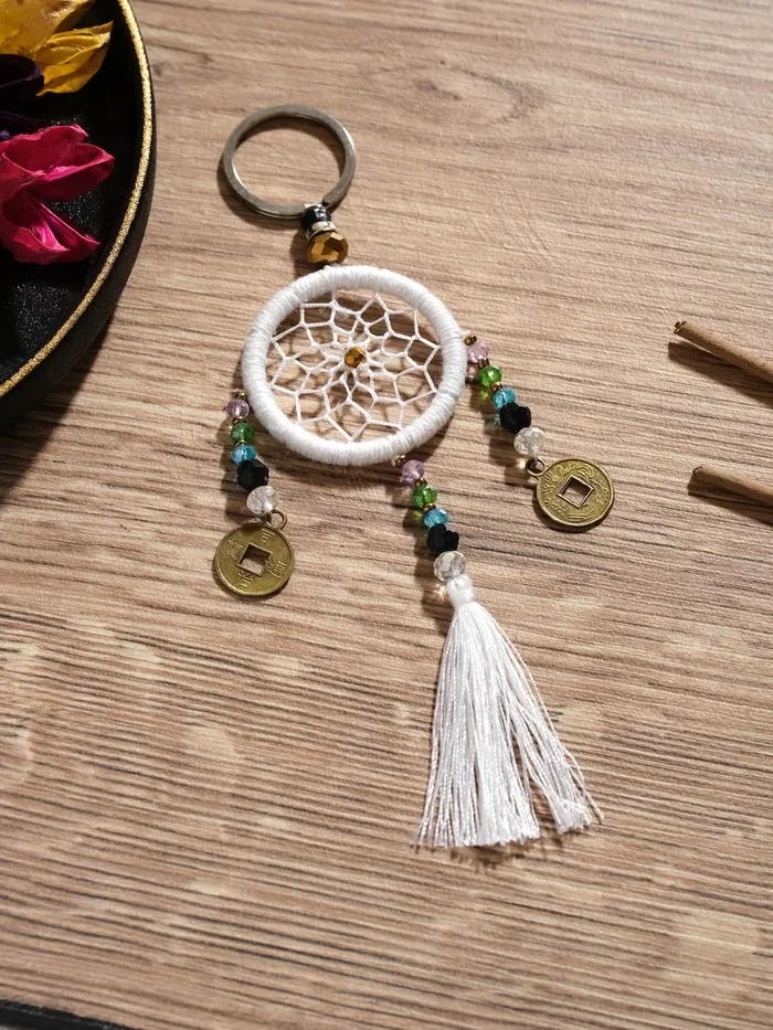 Этот аксессуар, вдохновленный традициями ловцов снов, призван не только украшать, но и оберегать. Его компактный размер 4×15 см делает его универсальным спутником — будь то ключи, сумка или интерьер вашего автомобиля. Каждая деталь продумана до мелочей, чтобы радовать вас своим видом и надежностью.