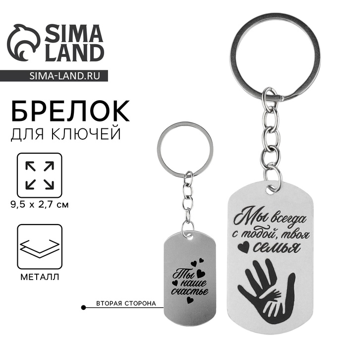 Брелок для ключей жетон «Ты наше счастье», 9.5×2.7 см