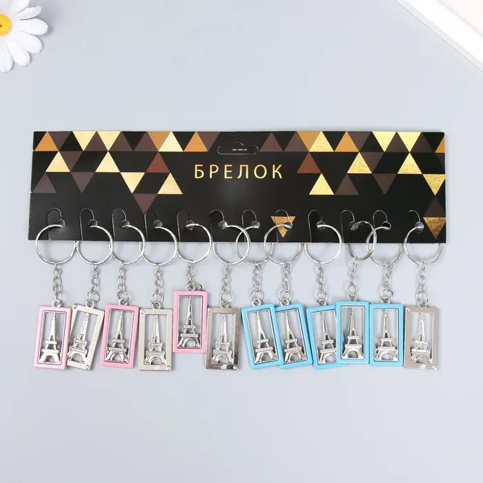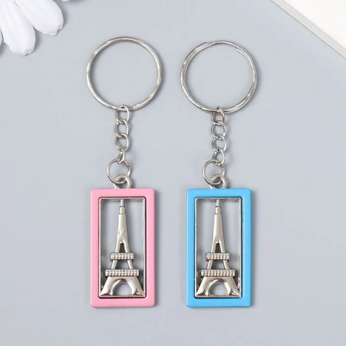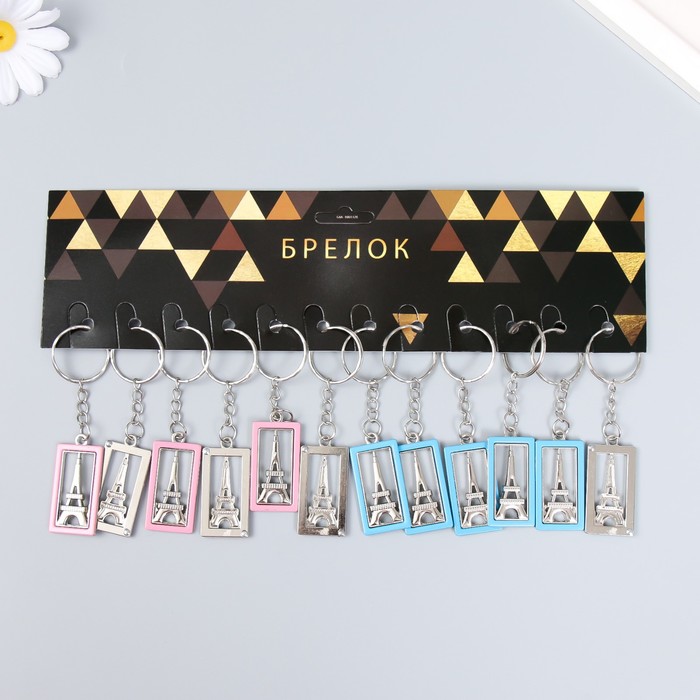 Брелок металл "Эйфелева башня в цветной рамке" МИКС 3,5х2 см