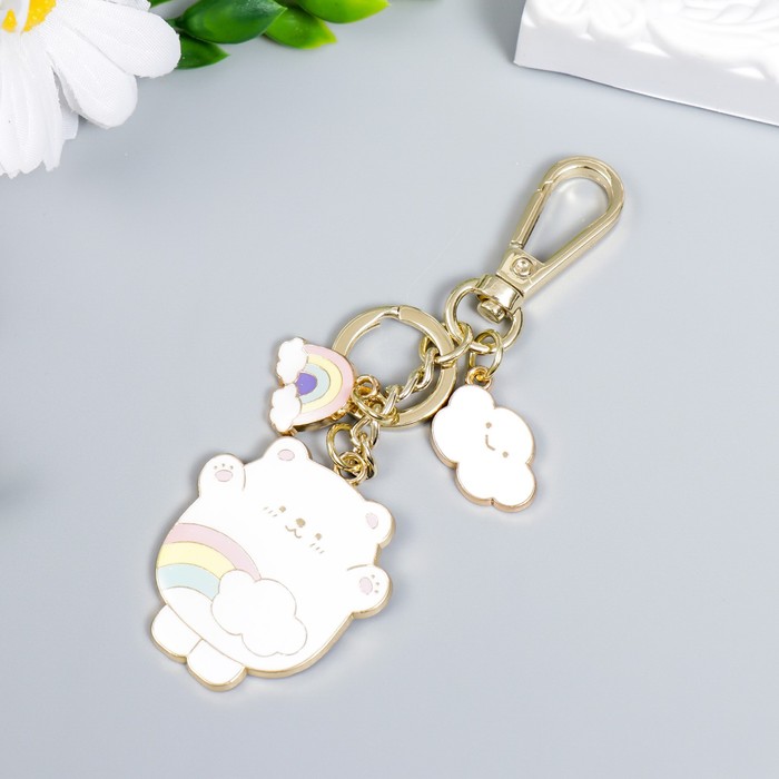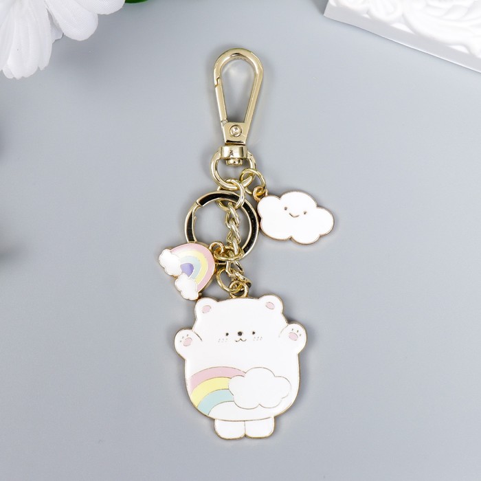Брелок металл, эмаль с карабином "Белый мишка с облаком и радугой" — Характеристики